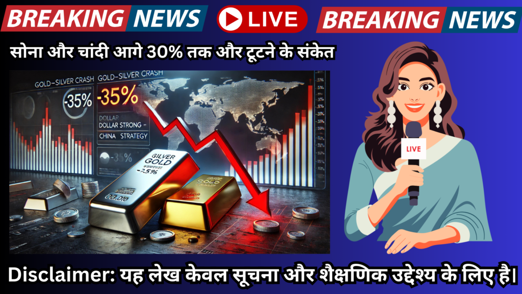 जब चांदी अपने रिकॉर्ड उच्च स्तर से करीब 35% तक टूट चुकी हो और आगे 30% तक और गिरावट की आशंका जताई जा रही हो, तब केवल भाव देखना पर्याप्त नहीं रहता। ऐसे समय में यह समझना ज़रूरी हो जाता है कि डॉलर की मजबूती, रुपये की कमजोरी, चीन की रणनीतिक चालें और वैश्विक सरकारों की नीतियां सोना-चांदी की कीमतों को किस तरह प्रभावित कर रही हैं।