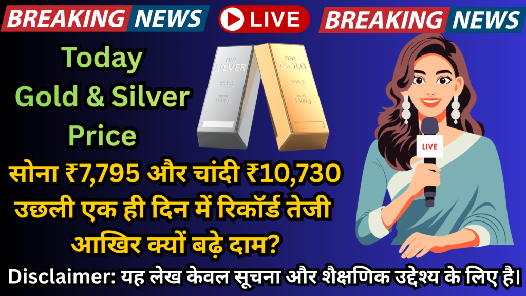 आज के इस लेख में हम Today Gold & Silver Price में आई ऐतिहासिक तेजी पर विस्तार से चर्चा करेंगे। सर्राफा बाजार में आज ऐसा उछाल देखने को मिला जिसने निवेशकों ज्वैलर्स और आम खरीदारों—तीनों को चौंका दिया है।